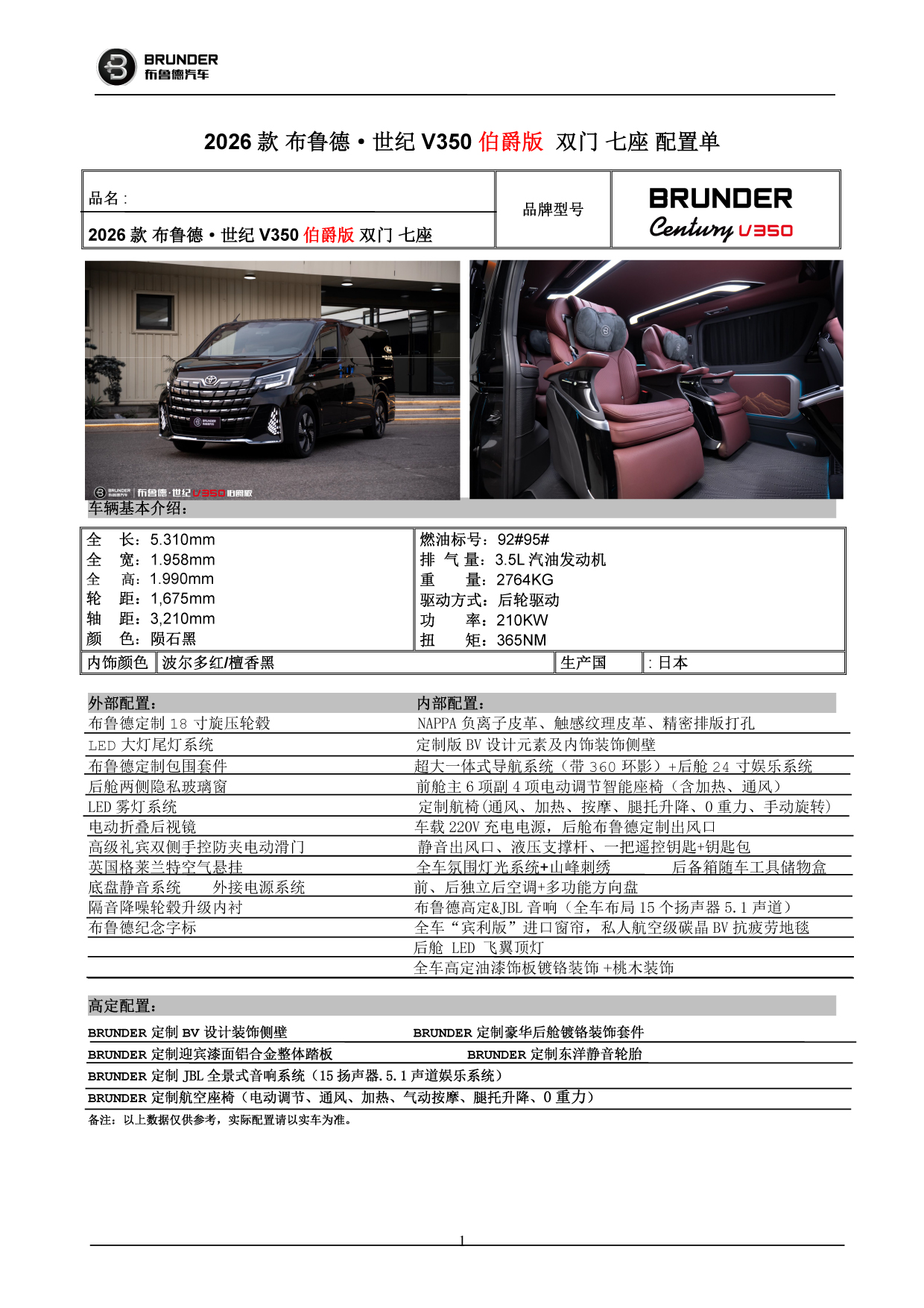 布鲁德·世纪 V350伯爵版